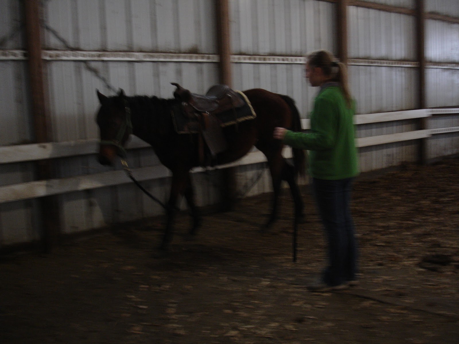 Later Aleythia said that the reason Ana might respect me more than she respects Aleythia is because "your not afraid to get kicked." When Aleythia tried to chase Ana around she just trotted and didn't take her seriously. Ana was constantly looking away. Not with me. She cantered and she didn't look away. I wasn't even using the stick and I got that response out of her. Now don't be stupid like me and put yourself into a position to get kicked. It is a very bad idea. And I am pretty sure you will not like the results of that action. If it's avoidable, avoid it.